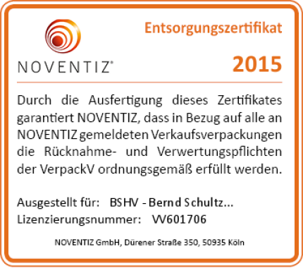 Gemäß des Verpackungsgesetz komme ich als Händler der Verpflichtung nach Verpackungen über das duale System fachgerecht entsorgen zu lassen.